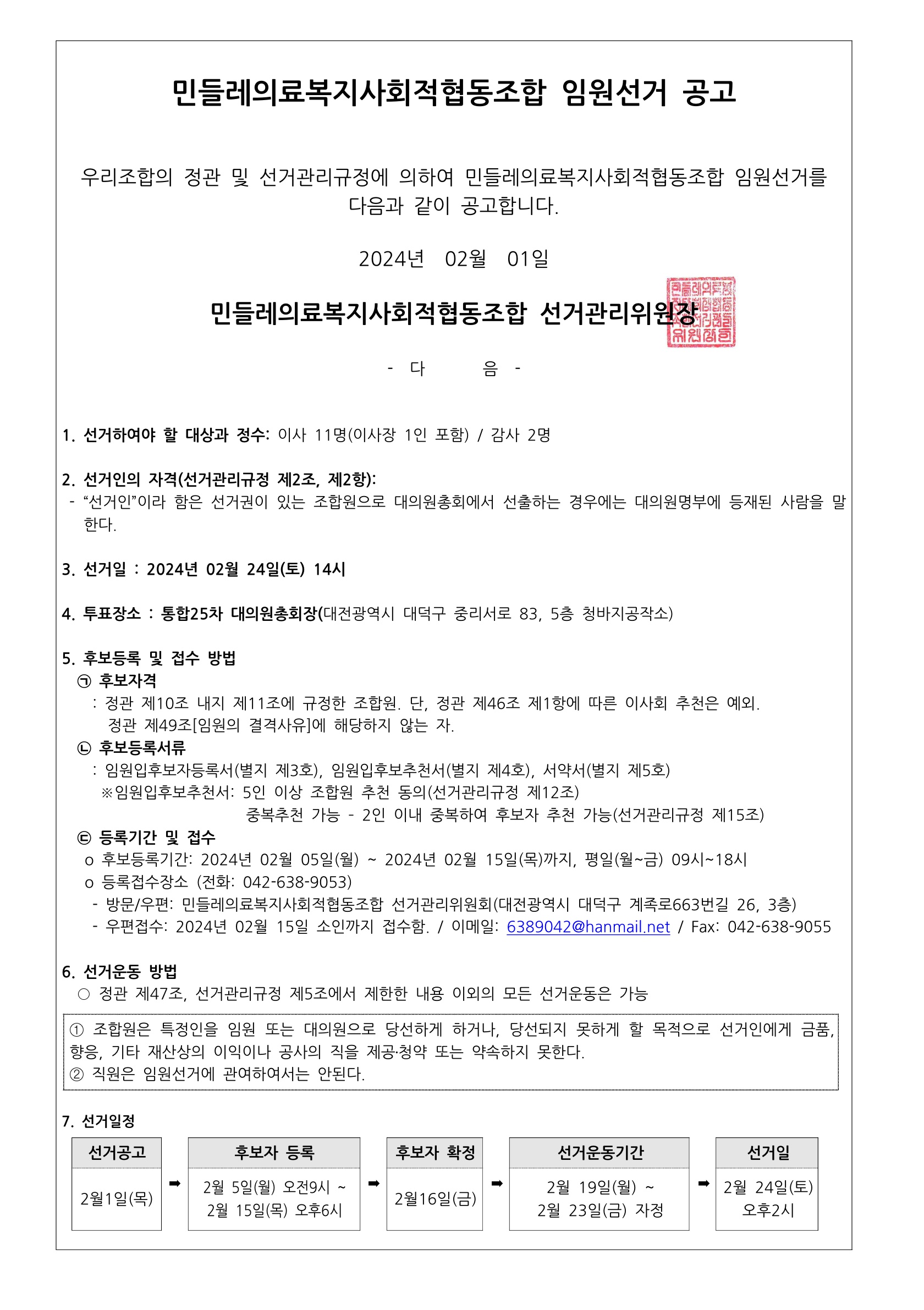 2024년 임원(이사, 감사)선거 공고