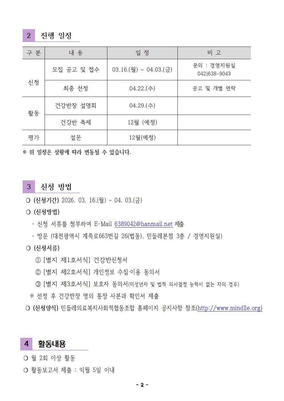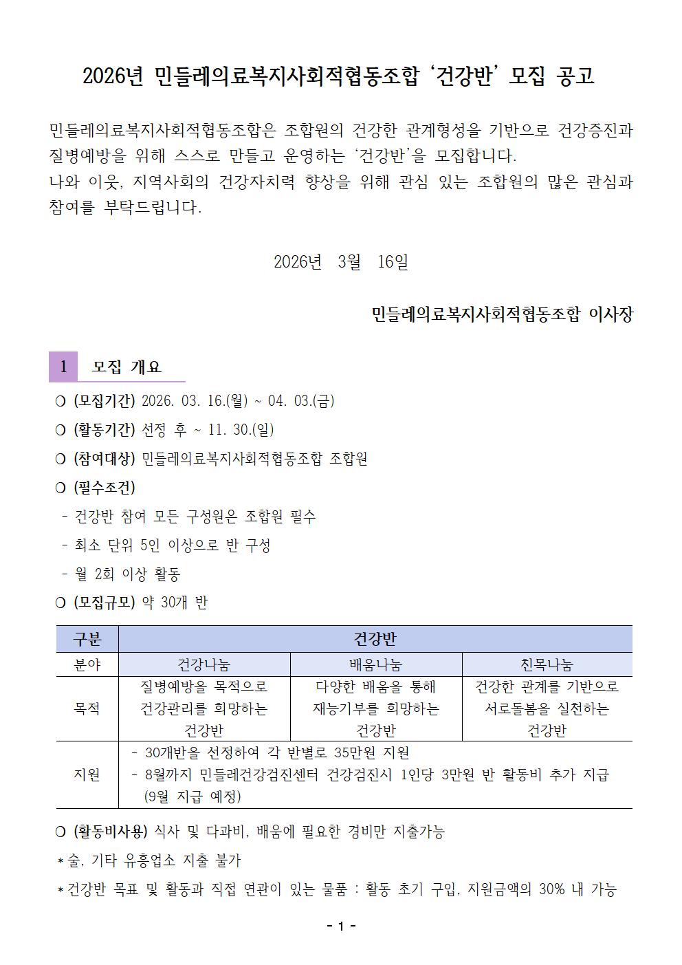 2026년 건강반 모집 공고